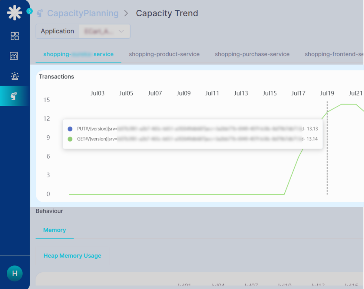 Connects application demand, infrastructure performance, and business transaction volumes to capacity consumption.